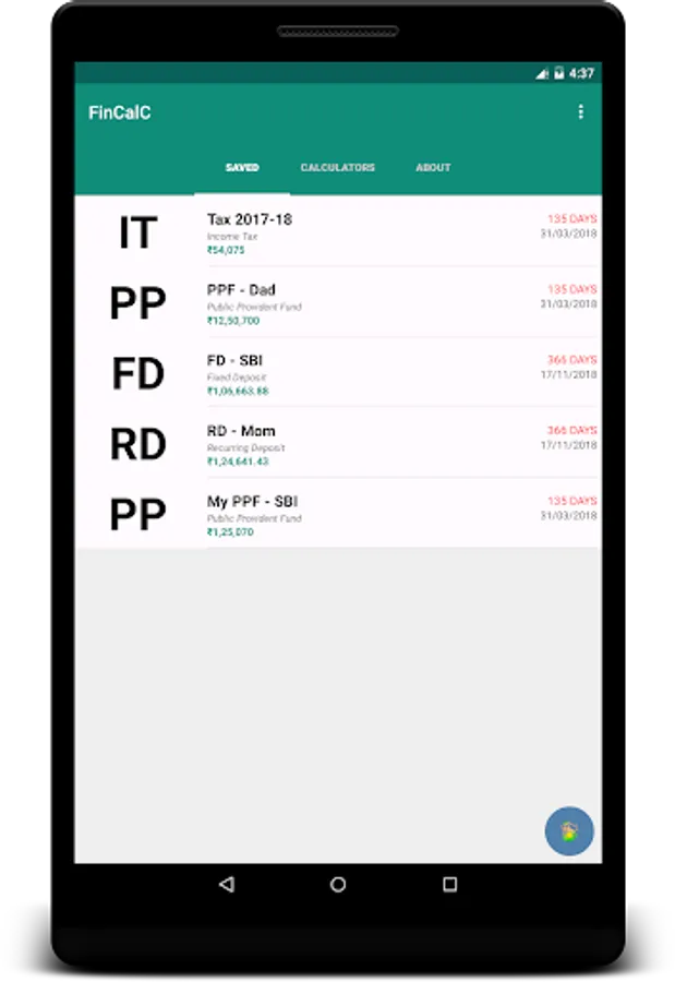 * Calculate and Save your Financial Accounts using FinCalC Income Tax & Financial Calculators App