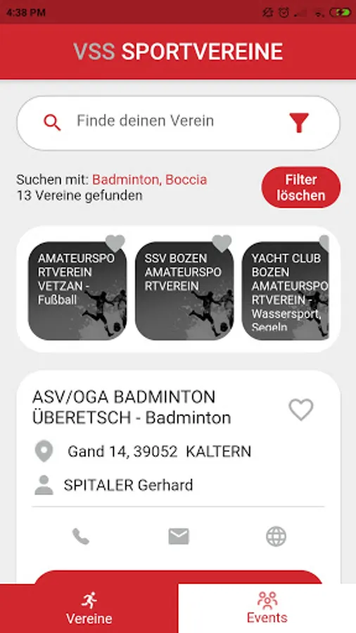 In the "VSS-Sportvereine" app you will find all South Tyrolean amateur sports clubs that are members of the Association of Sports Clubs in South Tyrol (VSS). With this app, the VSS would like to present the extensive activities of the South Tyrolean amateur sports clubs to the public and bring all those interested and enthusiastic about sports into contact with the sports clubs. By entering the desired filters, you can find the various sports clubs and their sports offers in your area.