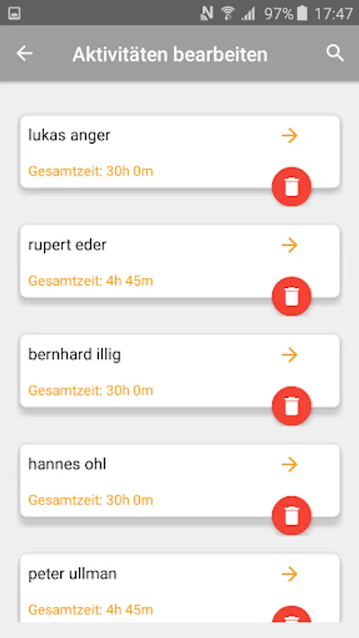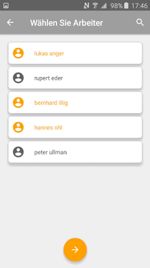 Once all the data from the previous step has been completed and the app has been downloaded on the smartphone , employees can enter real-time information (start and end dates, activities, used materials, etc.) making it possible to have exact employee activity-tracking an materials/tools-tracking.