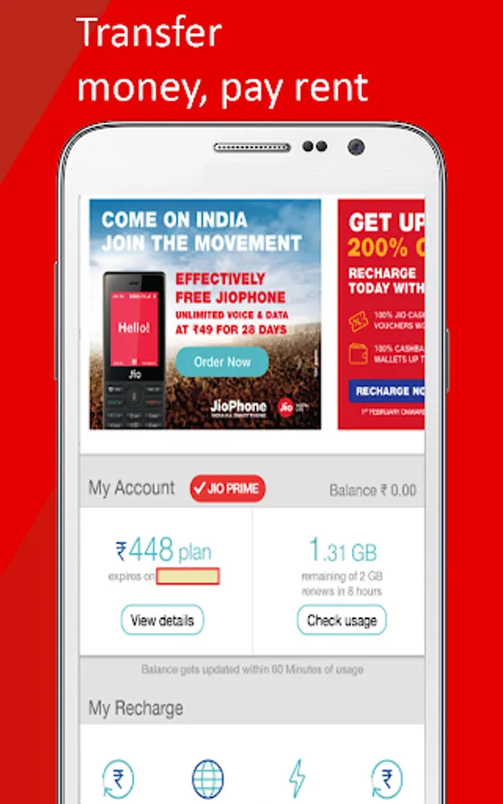 4.Recharge any myJio number.