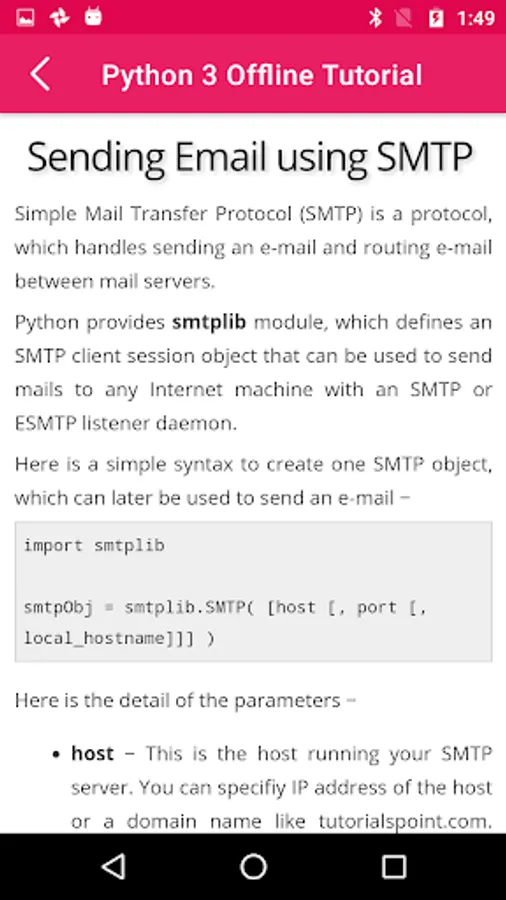 Python3 Offline Tutorial App from Tutorials Point is an easy-to-use, user-friendly platform to learn Python3, both at the fundamental and advanced level. Become a Python3 developer using Tutorialspoint Python3 Offline App today!