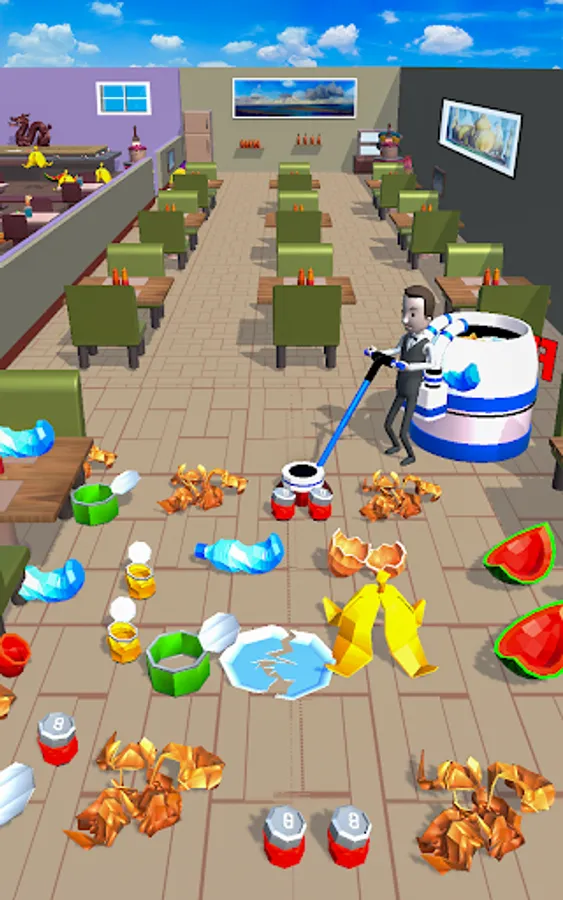 This game is cleanup simulation game where you cleanup restaurant floor, clean restaurant kitchen and clean restrooms.