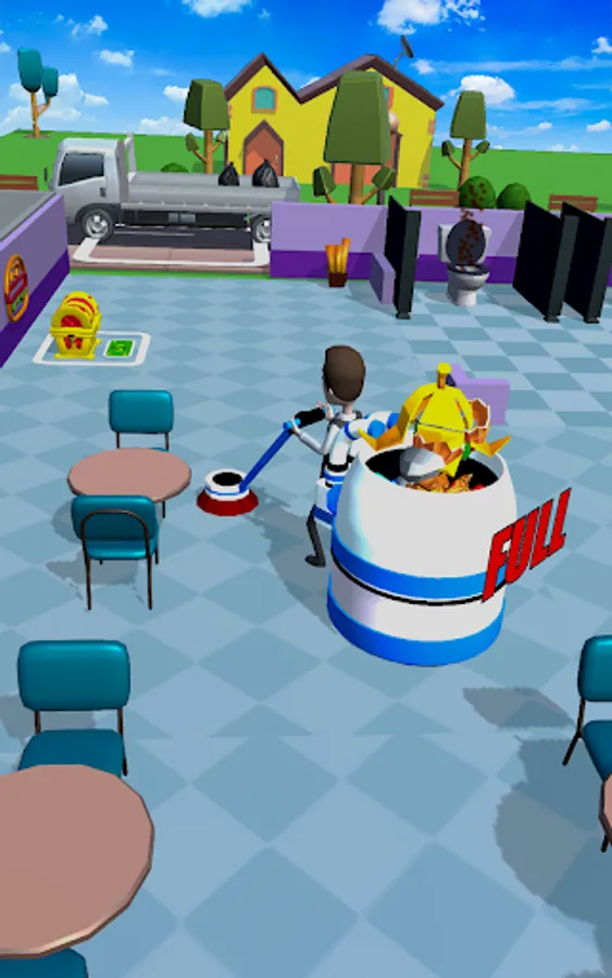 Game has simple controls. just use the cleaning machine to pick up the trash, collect trash and take the collected trash/garbage to the garbage truck and get money.