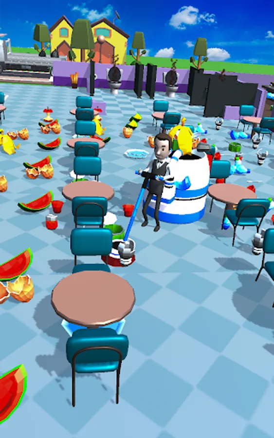 its shift close time, restaurant floor, table and restaurant kitchen is so dirty whose turn is it to clean, yours? yea pick up the cleaner equipment and start cleaning the floors! Perfect Power cleanup game simulation game.