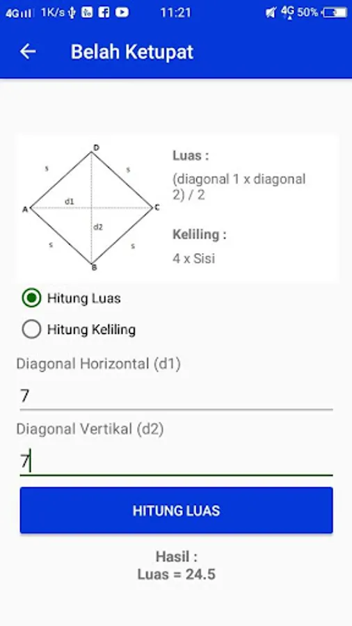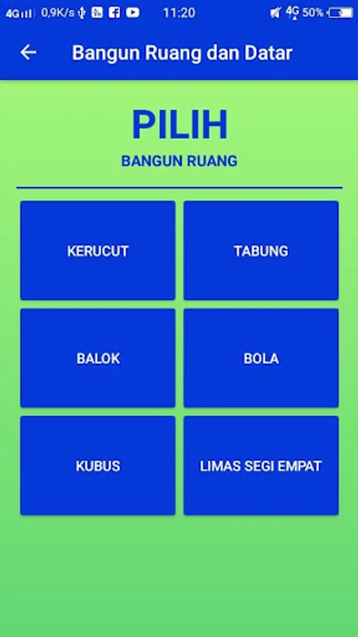 In its development will also be added questions to build space, as an exercise for students. It is hoped that this application can make it easier for students to learn to count using the Space and Flat Formulas.