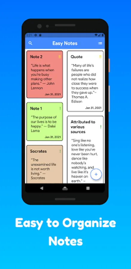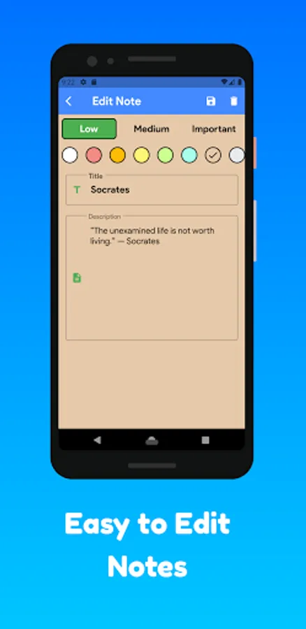 Easy Notes - It has a simple interface, easy to use. Our note taking app always wants to bring the best experience for users. Note app allows users to customize notes to create their own style.