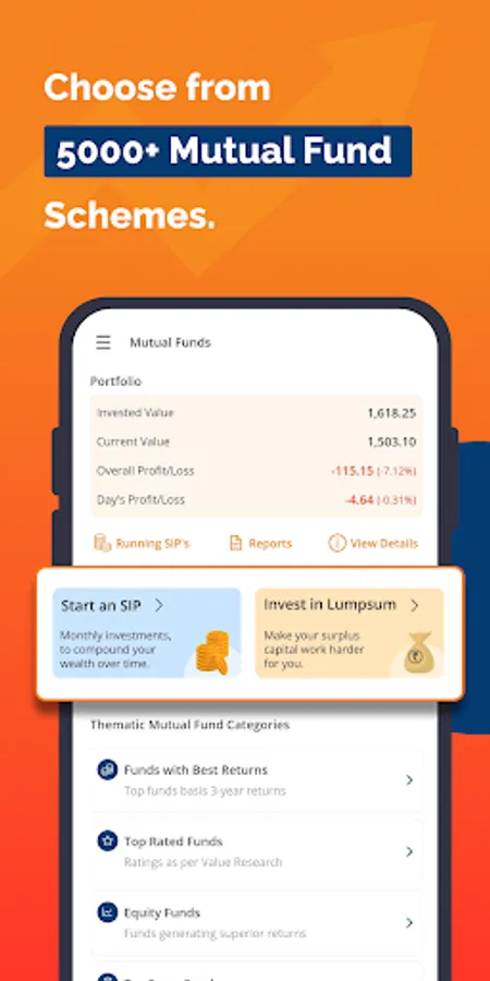 2. Make mutual fund investment through our mutual fund app and rest assured of zero brokerage fees.