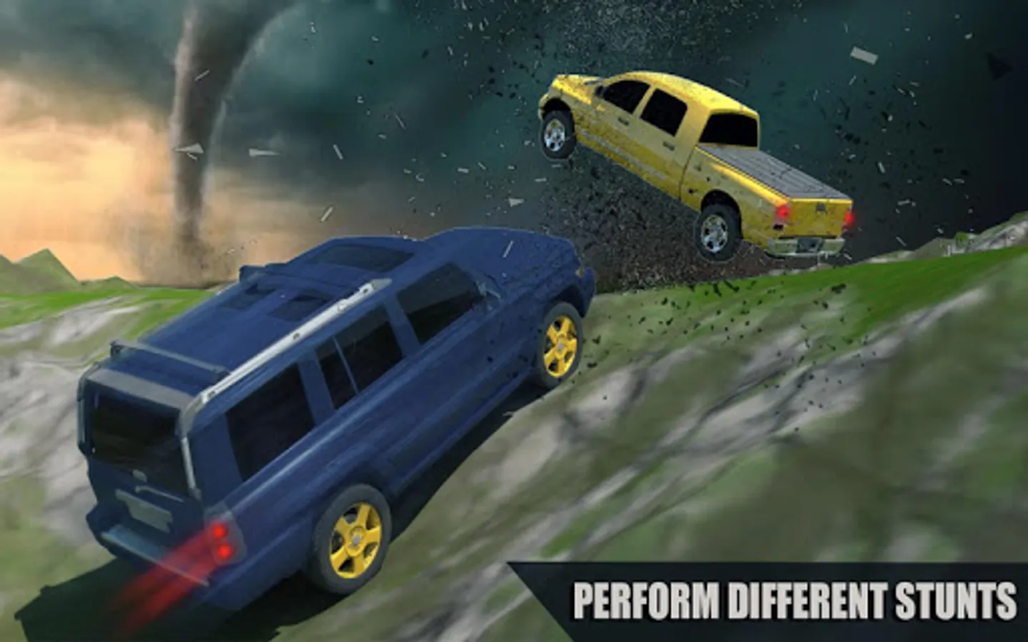 Drive ahead and embrace all the cyclones, twisters and tornado storms and become hero hunters of top crash derby and crazy off road stunts in this 3D offroad jeep driving,Tornado Games 3D and 4x4 offroad jeep driving.