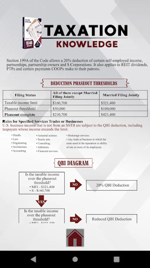 Quick Guide for Tax preparers. Includes: Standard Deduction, QBI Qualified Business Income, Tax Credit Amounts, Tax Formulas, Corporate and Non-Corporate Entities, etc.