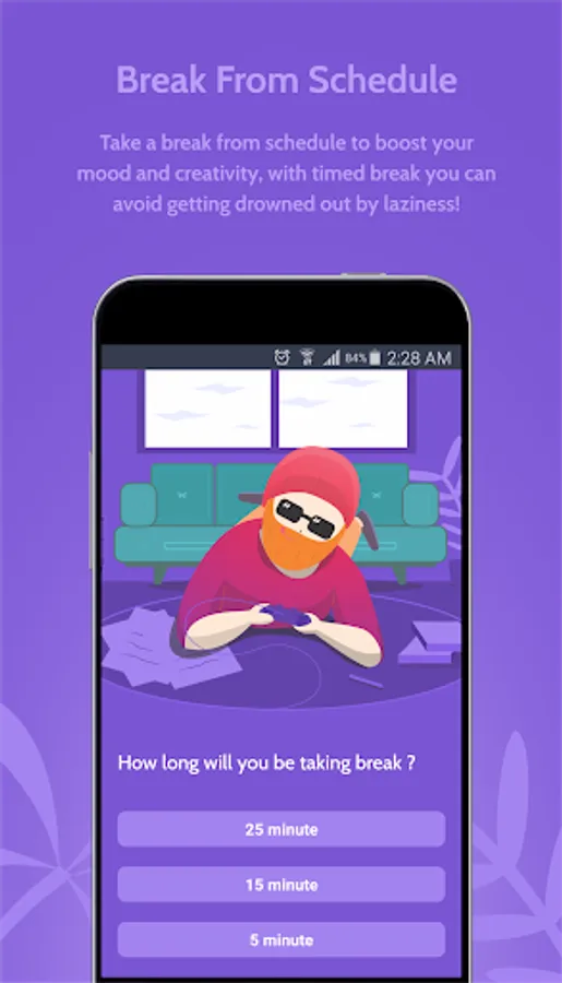 Don't worry if you cant help yourself, you can take a break from block schedule 🔓 for a few minutes to boost your mood and creativity! 🎨 Digidiction will keep track of your break time so you wont be drowned out by laziness 💤💤💤