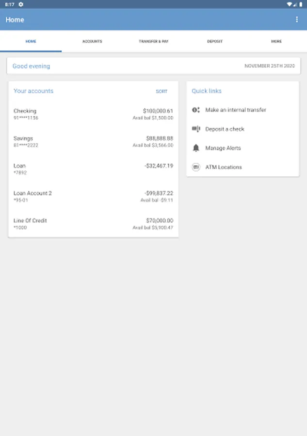 -Check your latest account balance and search recent transactions by date, amount or check number.