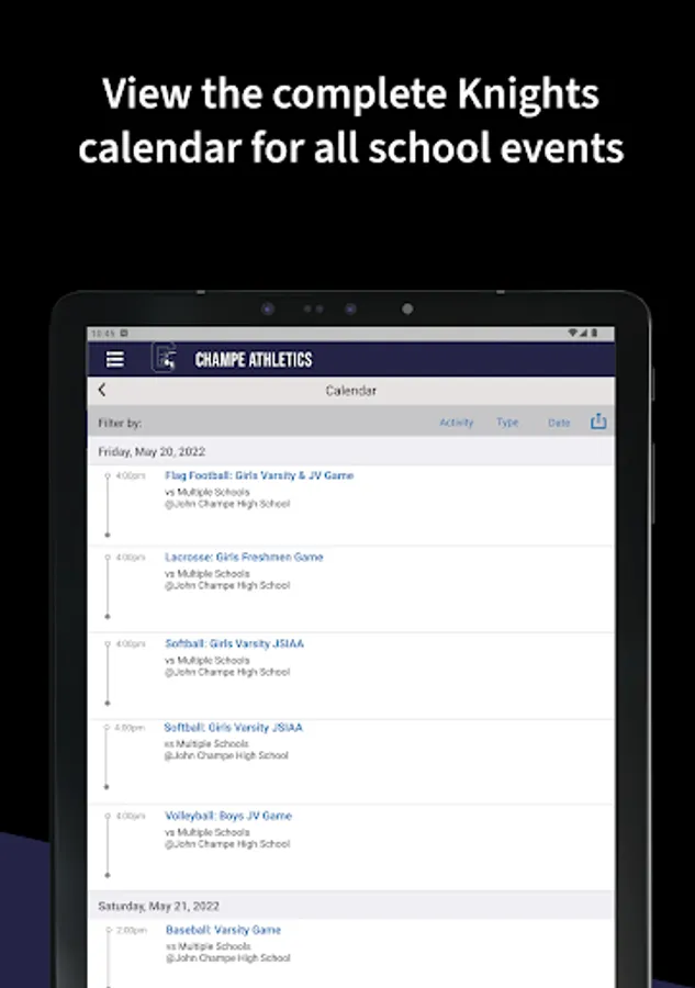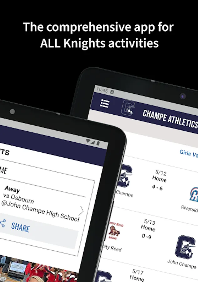 The Champe Athletics App is your complete source for all of your team’s information including schedules, rosters, scores, photos, highlights and more.