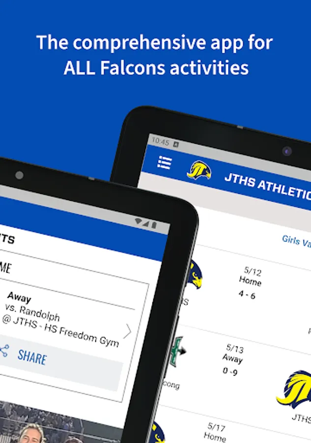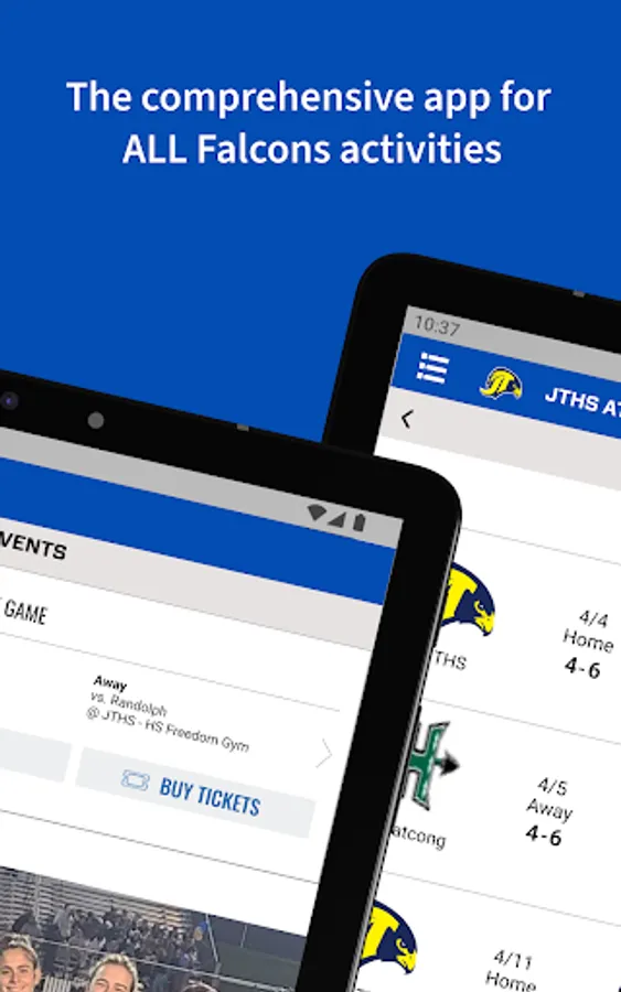 The JTHS Athletics App is your complete source for all of your team’s information including schedules, rosters, scores, photos, highlights and more.