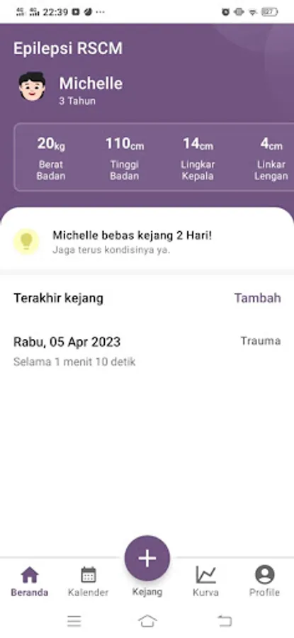 This application can be used by parents to record the occurrence of epilepsy experienced by children, so that the occurrence of epilepsy will always be recorded in the application.