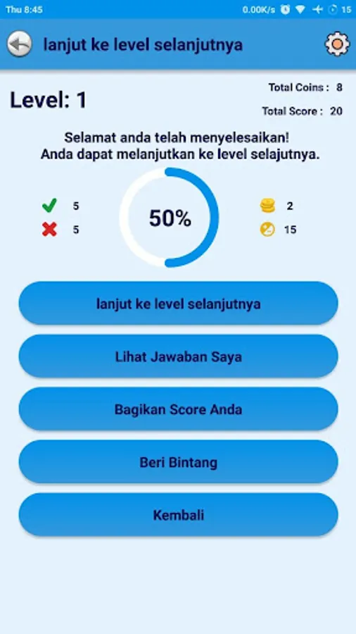 - Skip questions, you can skip questions without reducing the value of answers (subtract 2 coins)