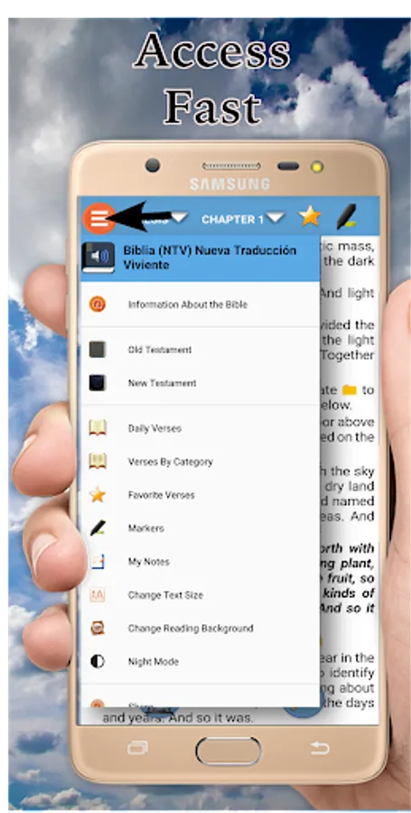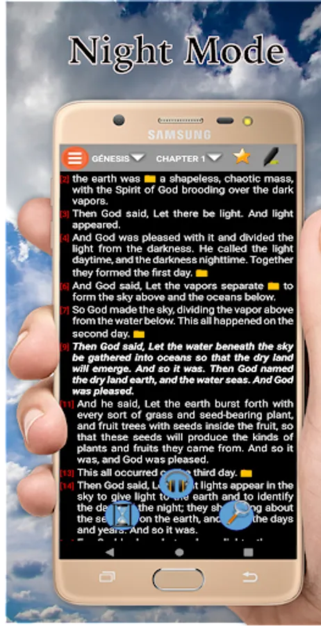 Access to the options menu quickly and sensibly. Option to change the text size. Change of reading background of the book. Access to favorite chapters and verses. Search for words in books, chapters and verses. Night mode to facilitate reading and decrease the light of the screen.