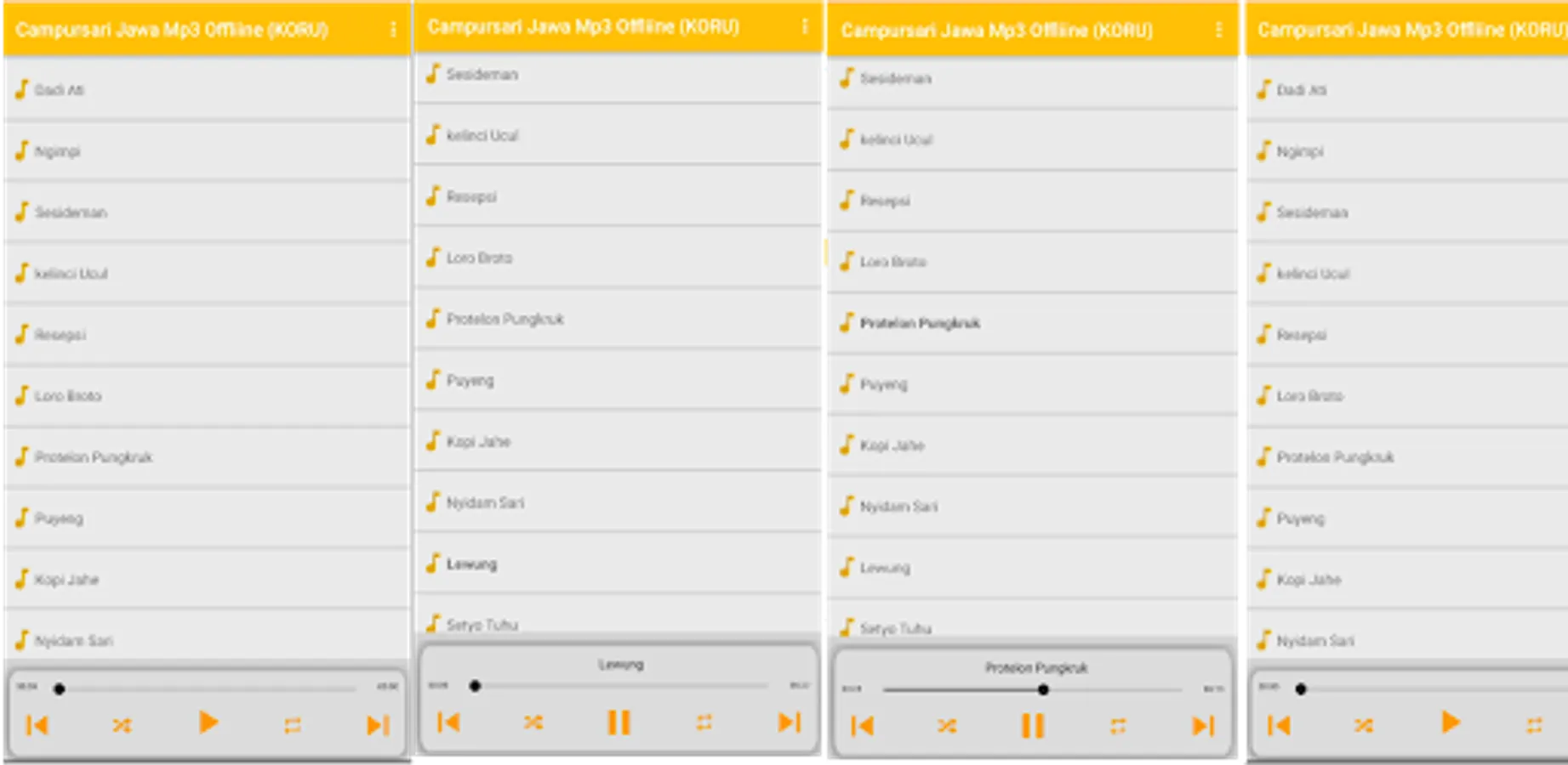 Campursari gending Jawa mp3 offline is a media player platform for music players with the .mp3 extension, KORU shares instrument music and/or covers whose lyrics or songs are incomplete unlike the original songs or music. Mp3 songs that are campursari Jawa mp3 offline are displayed here, to protect copyright, the mp3 quality is only and/or less than 125kbps. If you like the original music and the quality of the music is good, please buy it at the official music store to get the best quality mp3 songs.