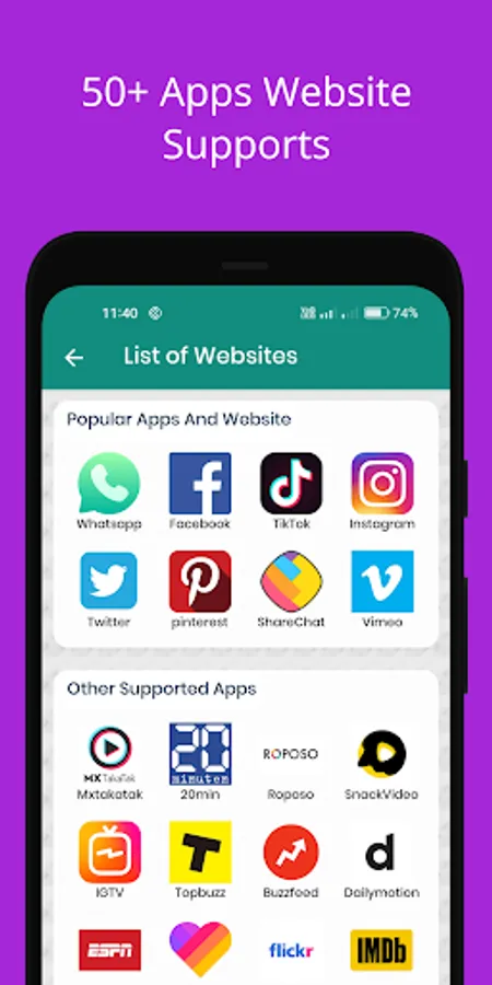 Also You Can find here moj, josh, sharechat, linkedin, pinterest, ted, and whatsapp status saver and other websites and apps .