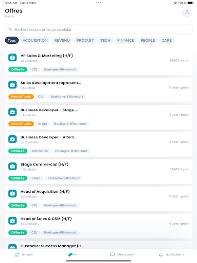 Flatchr is an all-in-one solution for human resources that includes application management, CV management, multicasting of your job offers, a candidate pool and a CV sourcing tool.