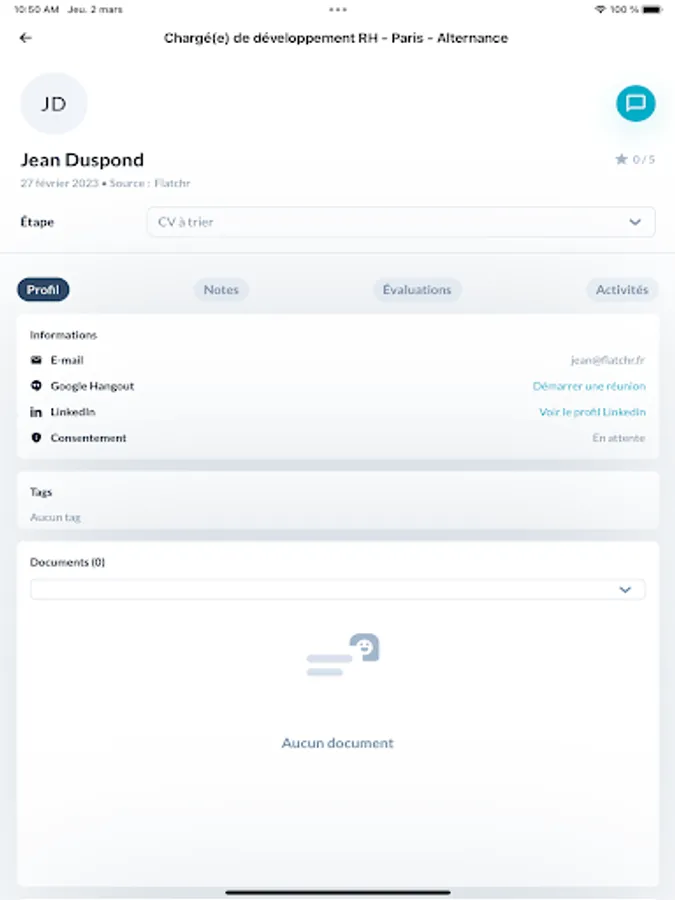 No need to open your computer, Flatchr simply slips into your daily life and allows you to not miss any interesting candidate.