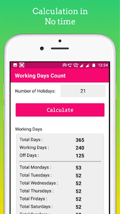 This calculator can also easily calculate the number of working or nonworking days in a given period. It is interesting to know how many SUNDAYS, MONDAYS, TUESDAYS, WEDNESDAYS, THURSDAYS, FRIDAYS AND SATURDAYS in between two dates. So, use this AGE Calculator App, One of the best and most interesting Calculator App.