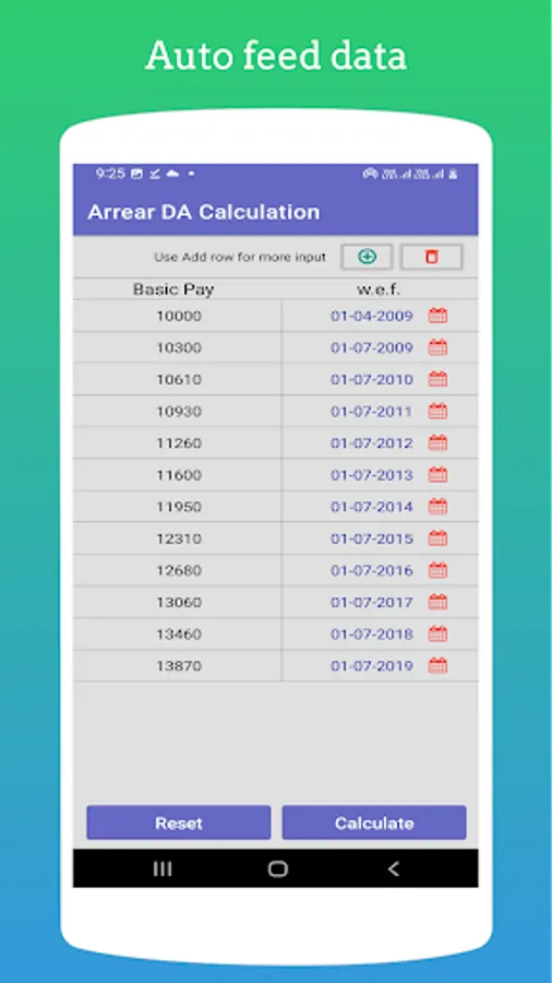 The date and amount will be populated automatically after adding every row. If any mismatch is noticed edit that row to enter the correct Basic Pay and effective date.