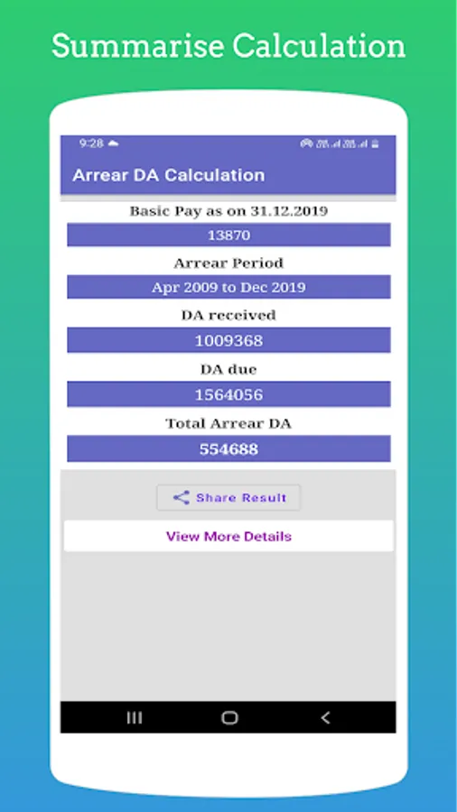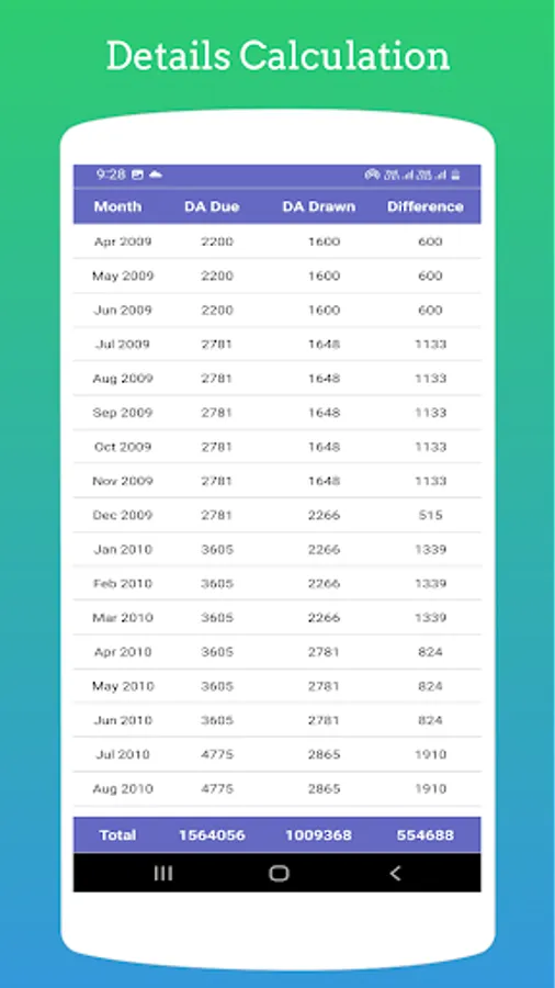 After that press the calculate button to view the summary of the DA arrear calculation.