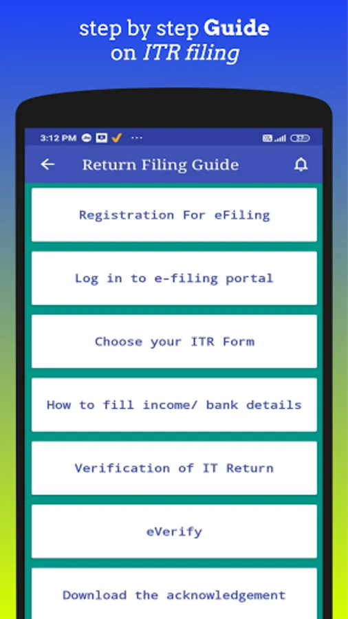 Besides, find here easy-to-follow guidelines on how to file Income Tax returns. Follow the guidelines to know "How to register in the e-filing portal for online submission of ITR", "How to login to the income tax portal", "How to choose ITR Forms", "How to e-Verify your Return" etc.