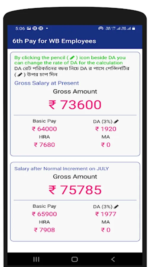 "WB Employees Salary Calculator" is a utility app that can give you the idea of how to derive the revised pay from the existing pay. You have to just enter your Pay in Pay Band, select your Grade Pay, HRA, and hit the calculation button.
