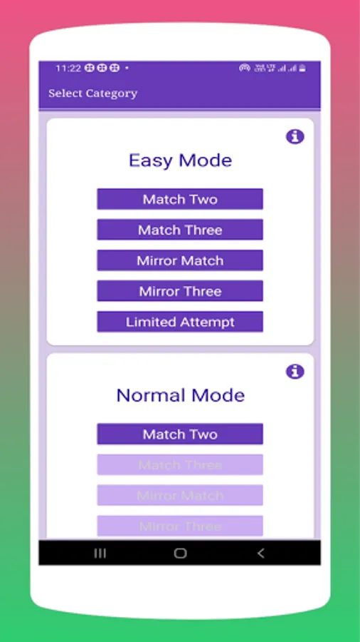 Picture Match Brain Game is an addictive interesting game to test your memory power yourself. Improve yourself and your brainpower while playing the game. Memorize the images and match them to solve the levels in various categories like Match Two, Mirror Match, Limited Attempt, Match Three, Mirror Three, etc.