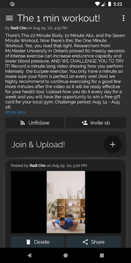 - Upload a video if you wanna join the competition... or just have fun watching how others perform in challenges.