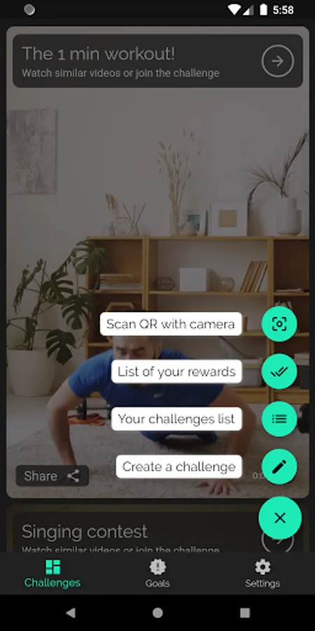 - Join a challenge by scanning a QR. OR create your own challenge to invite friends to.