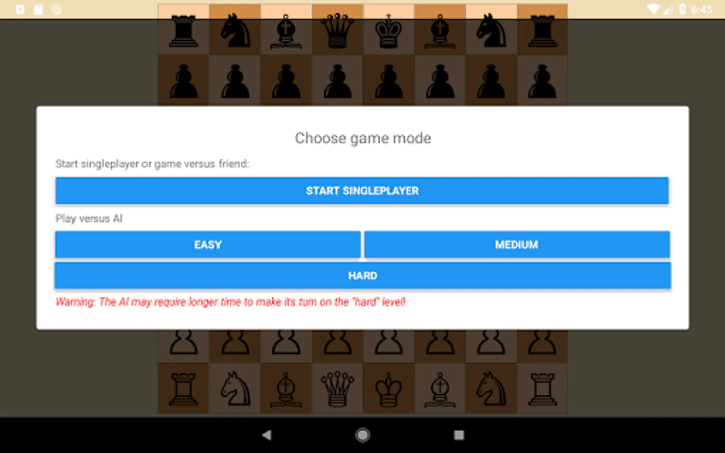 You can play versus your opponents on your device, like real chess board. The game support all chess moves and rules with cool graphics. They're basic and supported on the most platforms with small differences. Multiplayer and live game is not available at the moment, but they're in development and soon you'll be able to play versus opponents on the internet or vs computer.