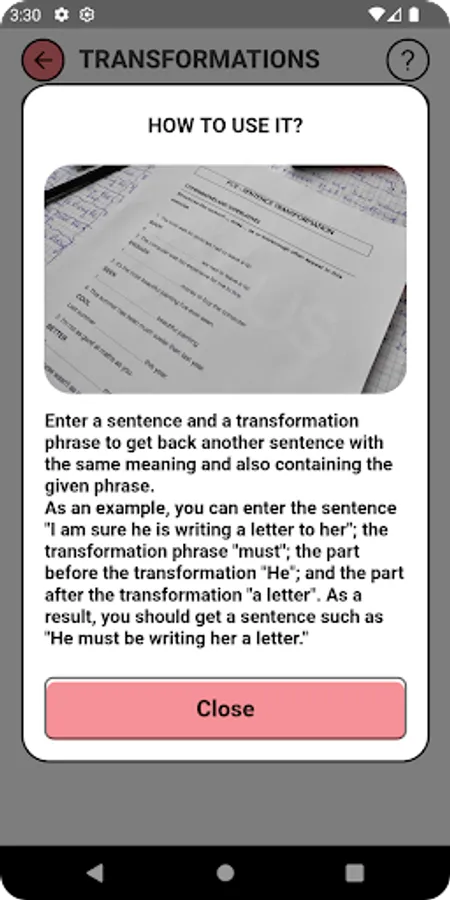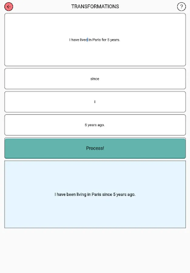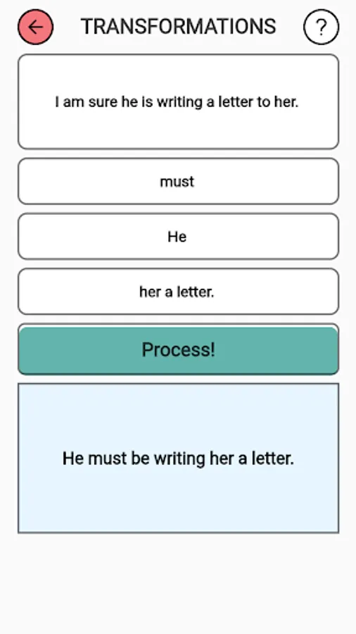 Everyone has encountered English language exercises such as sentence transformations or sentence creation from scrambled words in their grammar classes or foreign language courses. Our app aims to help you learn the English language more easily and solve such exercises with the help of AI. Currently we support two types of problems: