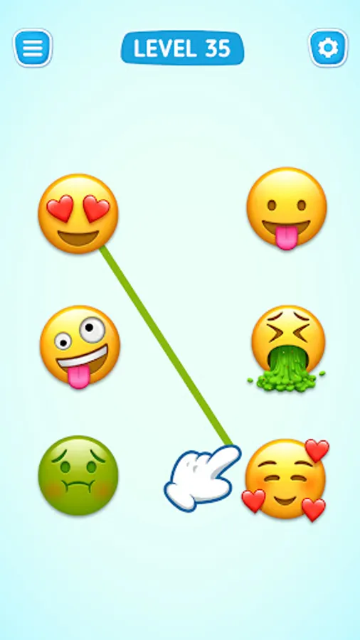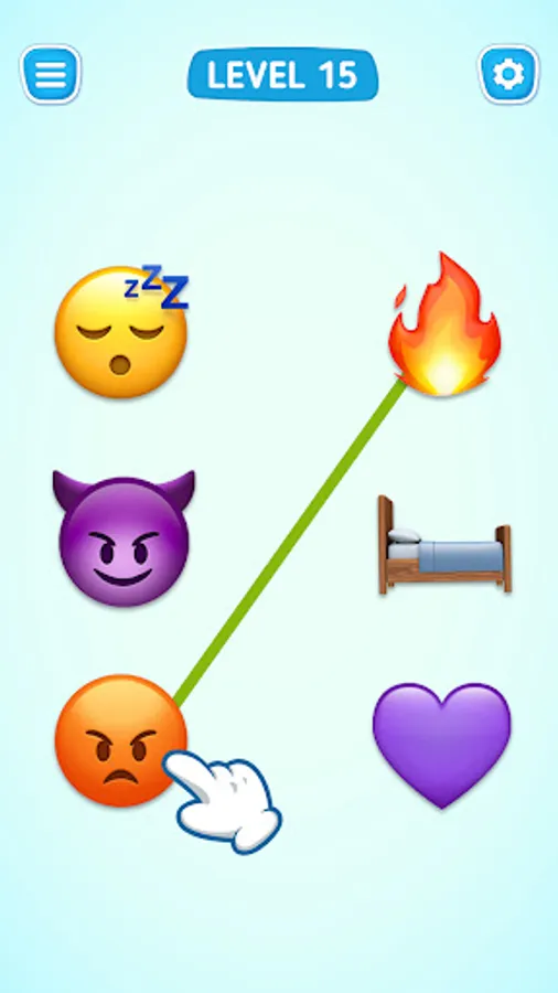 Connect the matching smileys! In emoji game, connect pairs of emotions by associations and test your observation skills in the immersive fun emoji puzzle matching game😀 Think and find the idea of each puzzle, in fun emoji puzzle test brain game🧠, its also called imagination game, matching game and puzzle game🐹 Just tap one by one on the elements from different columns to connect them with a line, the colorful emoji match game that merges fun and logic! ✌️ Or drag to draw a line and connect elements of emoji pairs. Match the icons, If you correctly connect all the elements & puzzles challenge, you pass the level of puzzle game 👍emoji wala game 🤓 enjoy puzzle game.