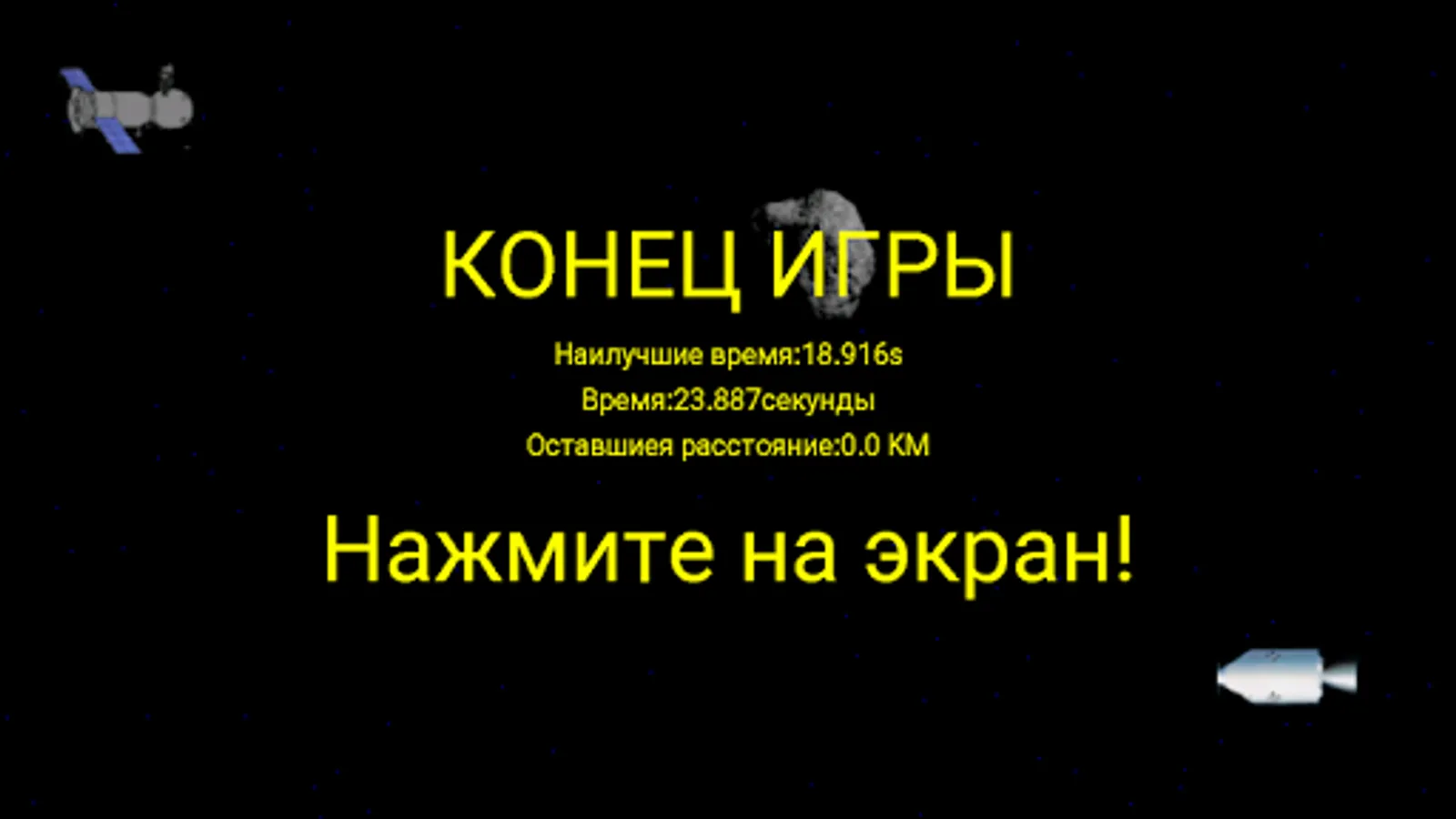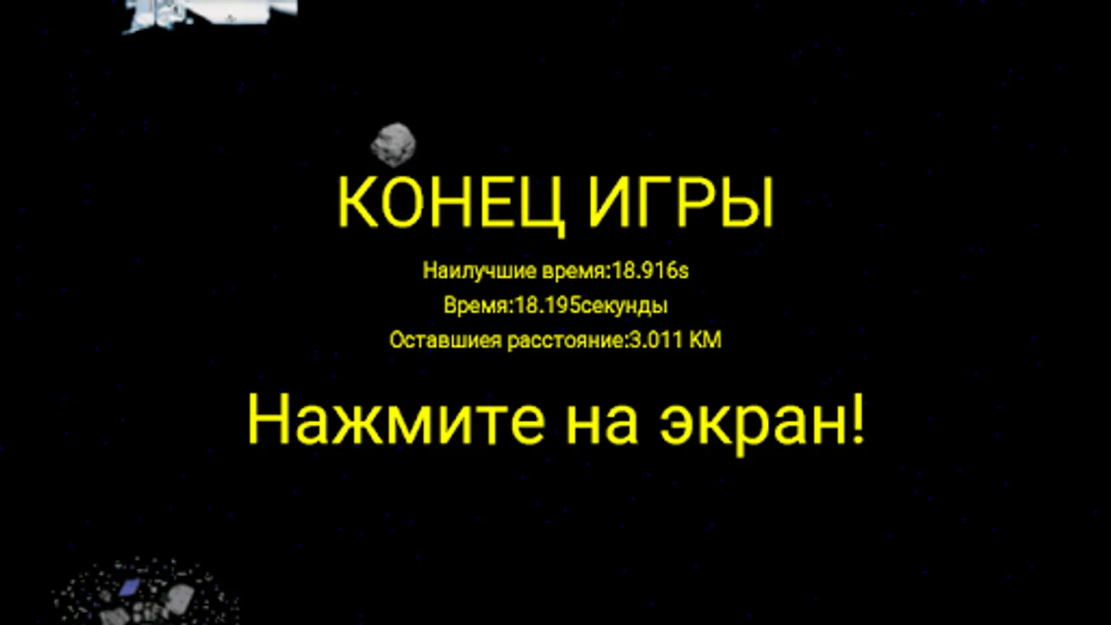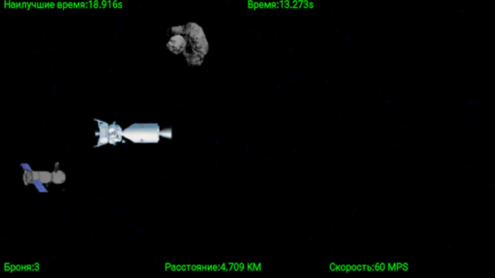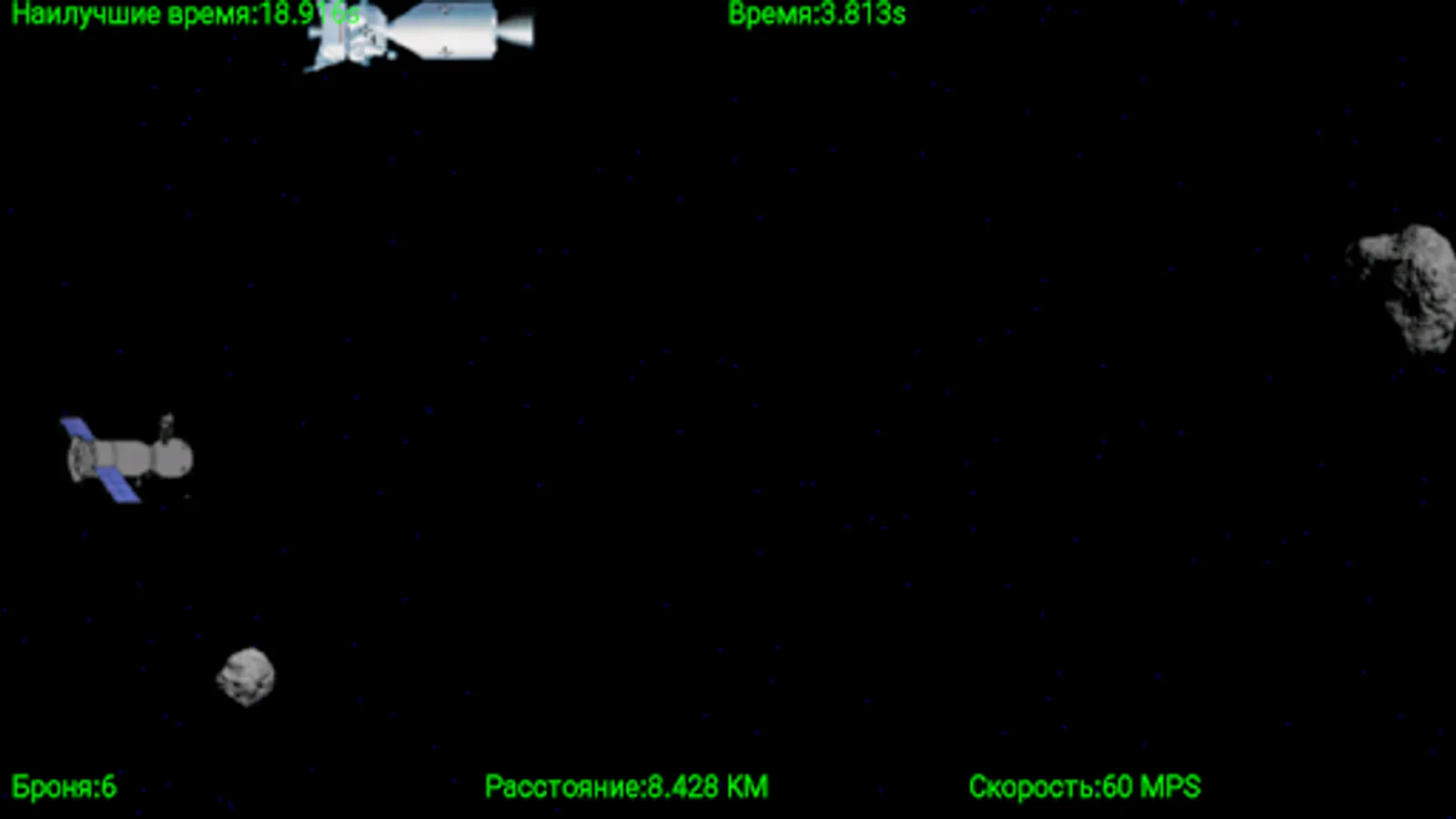 It is game contains three levels, levels differ on complexity, namely quantity of "armour". At collision with an obstacle the ship loses the armour.