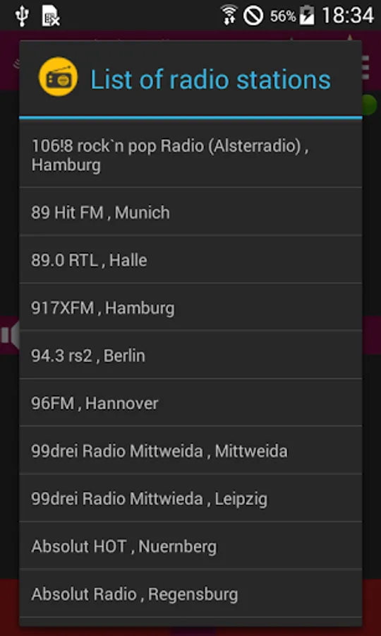 Application provides listening to German radio stations