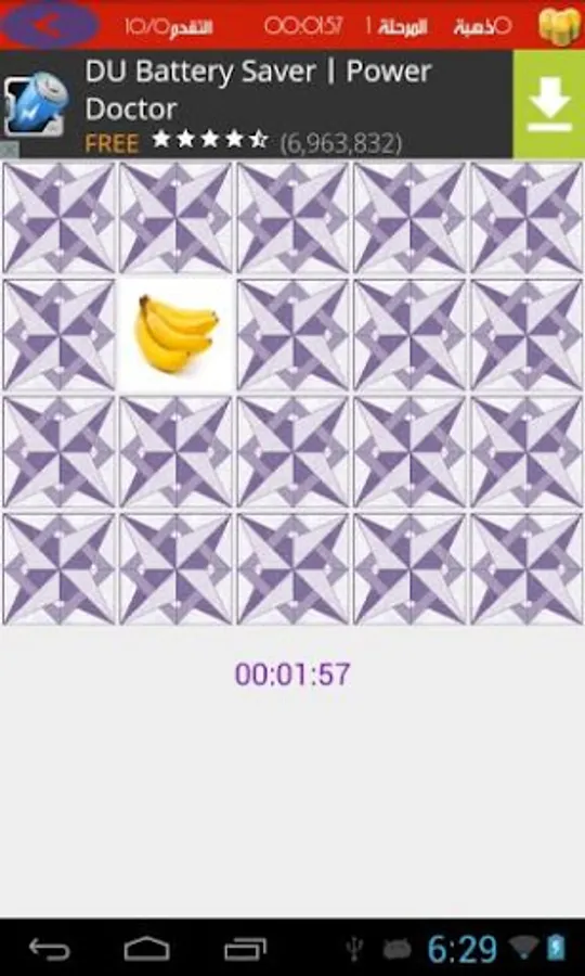 The application of the game of memory is a game based on the strength of human memory in keeping things where the application consists of 15 stages the player must pass sequentially where the player is given at each stage a specific time so that he can win and move to the next stage and must not exceed the specified time As the player progresses in time, the time in each stage is reduced in order to increase the challenge as well as replacing the images at each stage, but not entirely.