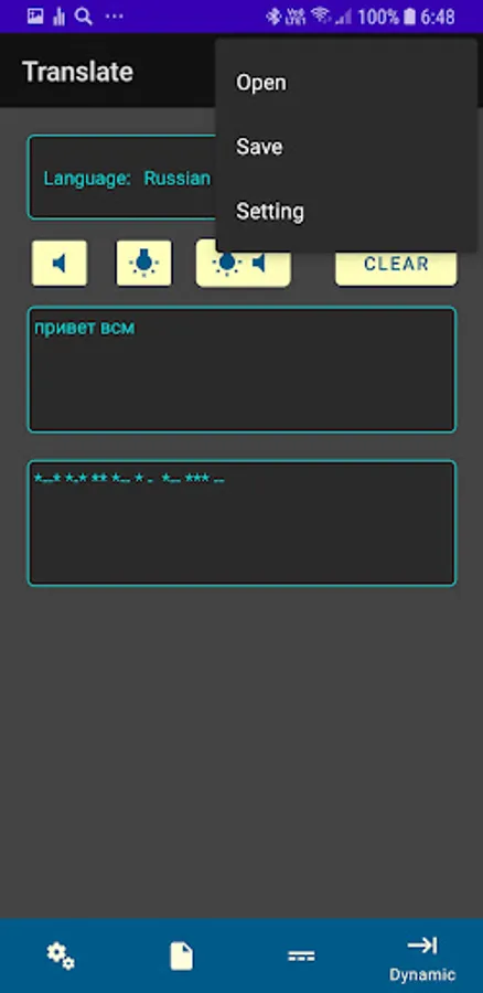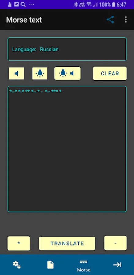 This application allows you to translate into Morse code English and Russian
