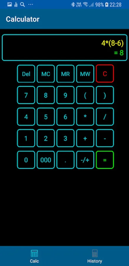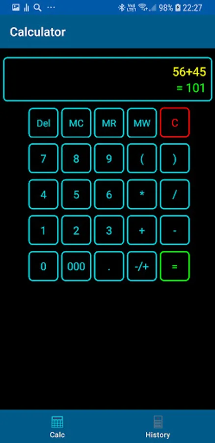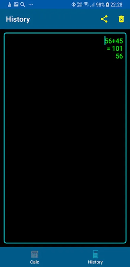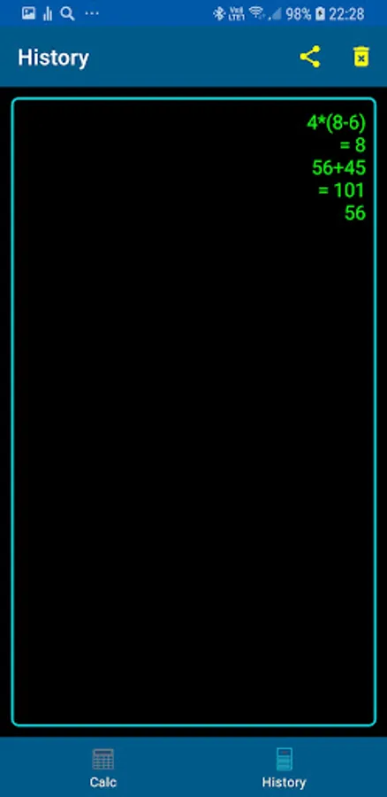 The calculator also has the ability to send the history of your calculations by mail or any messenger