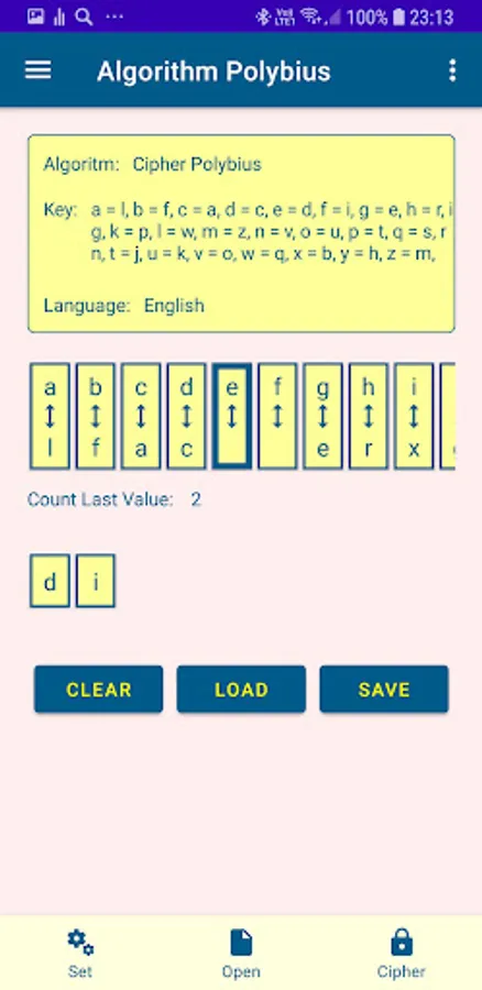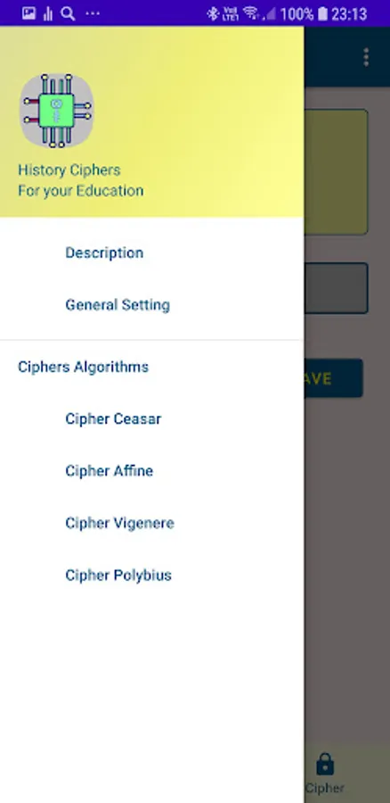 This application was created for teaching metatics and history. And of course you can hang your friends trying to solve each other's cipher