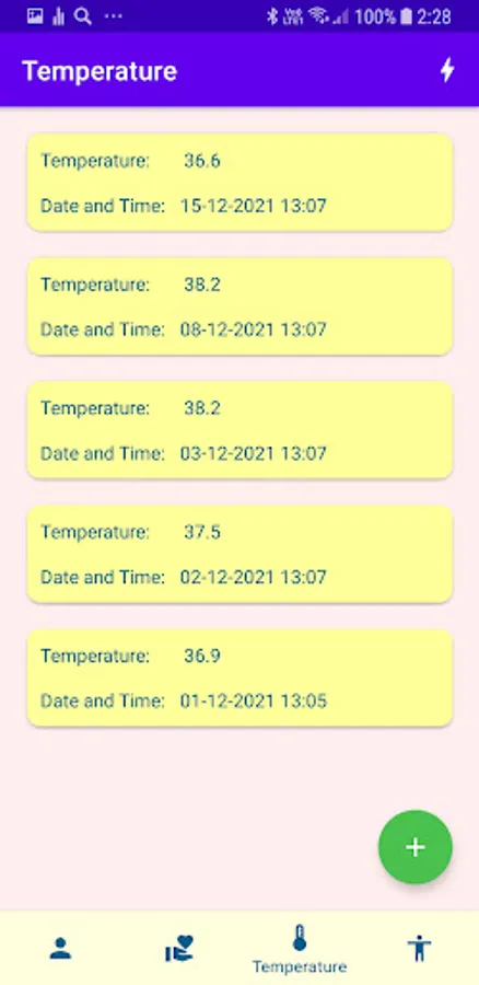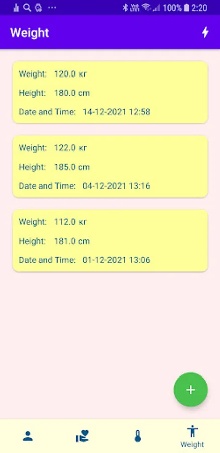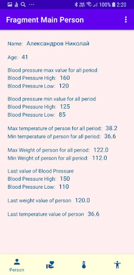 Save data blood pressure, temperature, high and weight of the person
