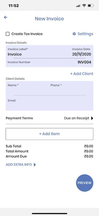 2. GST Invoice: Generate fully compliant GST Invoice using, HSN/SAC number, Origin and destination state code, split of tax detail, Authorised signatory and payment detail.