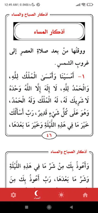 This application contains a set of dhikrs from the Prophet Muhammad, may God bless him and grant him peace. It is divided into three sections: