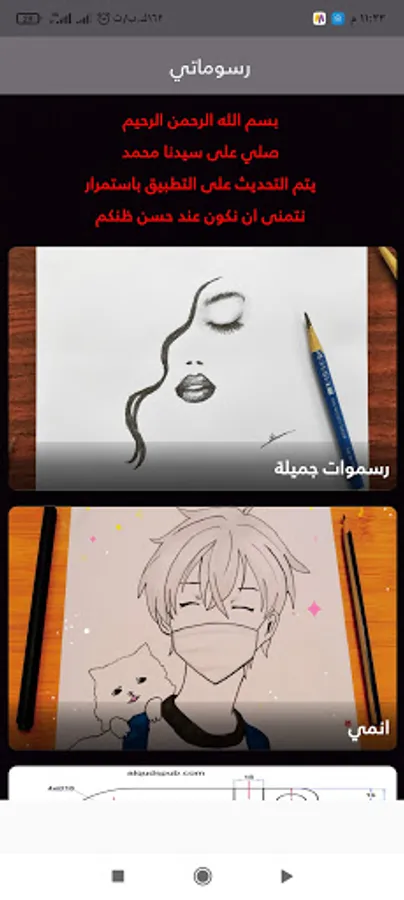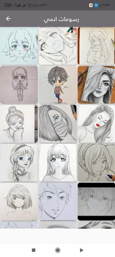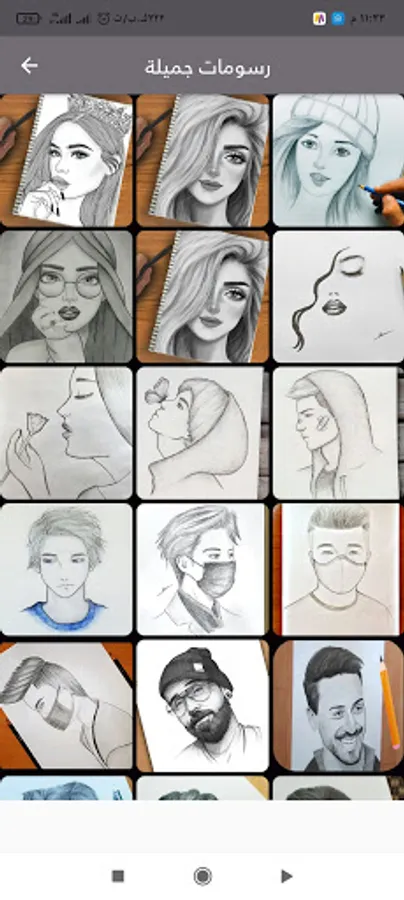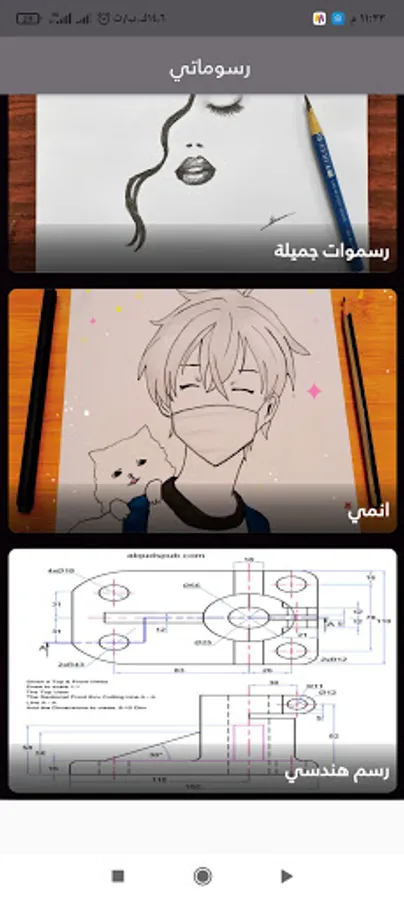 The app contains people drawings, anime drawings, and engineering drawings