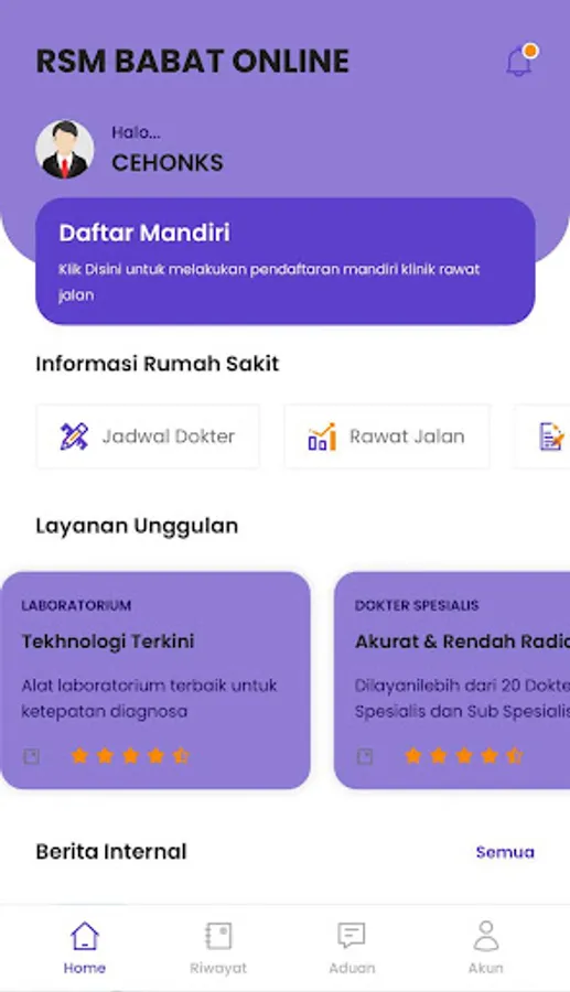 Aplikasi berbasis Mobile digunakan untuk pasien yang sudah memiliki Nomor Rekam Medis dan sudah terdaftar di RS Muhammadiyah Babat untuk melakukan booking pendaftaran poliklinik secara online, dapat mempermudah pasien untuk mengetahui jadwal dokter dan ketersediaan tempat tidur.