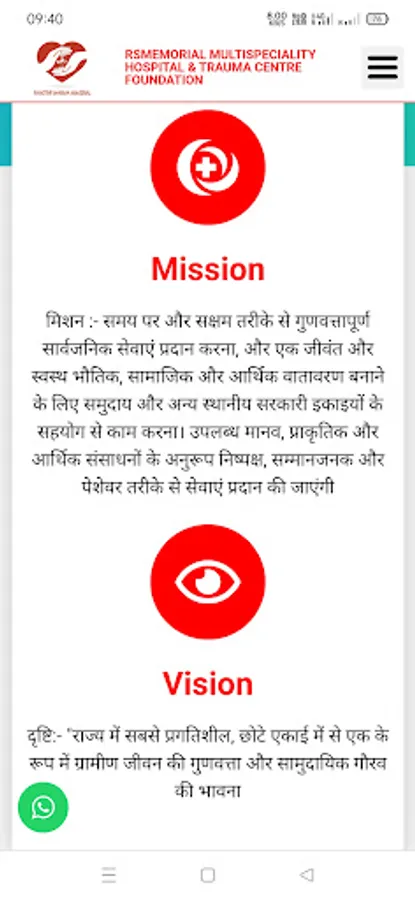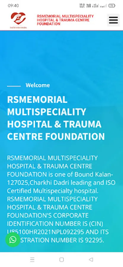RSMEMORIAL MULTISPECIALITY HOSPITAL & TRAUMA CENTRE FOUNDATION is one of Bound Kalan-127025,Charkhi Dadri leading and ISO Certified Multispecialty hospital. RSMEMORIAL MULTISPECIALITY HOSPITAL & TRAUMA CENTRE FOUNDATION'S CORPORATE IDENTIFICATION NUMBER IS (CIN) U85100HR2021NPL092295 AND ITS REGISTRATION NUMBER IS 92295. Rsmemorial Multispeciality Hospital & Trauma Centre Foundation's Annual General Meeting (AGM) was last held on N/A and as per records from Ministry of Corporate Affairs (MCA). Our Hospital open since 2019 registred on MCA, We, as a multi-specialty hospital provide comprehensive, seamless and integrated world-class healthcare services in Bound Kalan,Charkhi Dadri. With a team of professional doctors in Charkhi Dadri,Bhiwani, we offer treatment in different medicines and surgery under one roof. We have well-trained and experienced doctors and nurses who are committed to provide high standards of medical service.