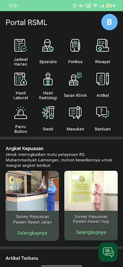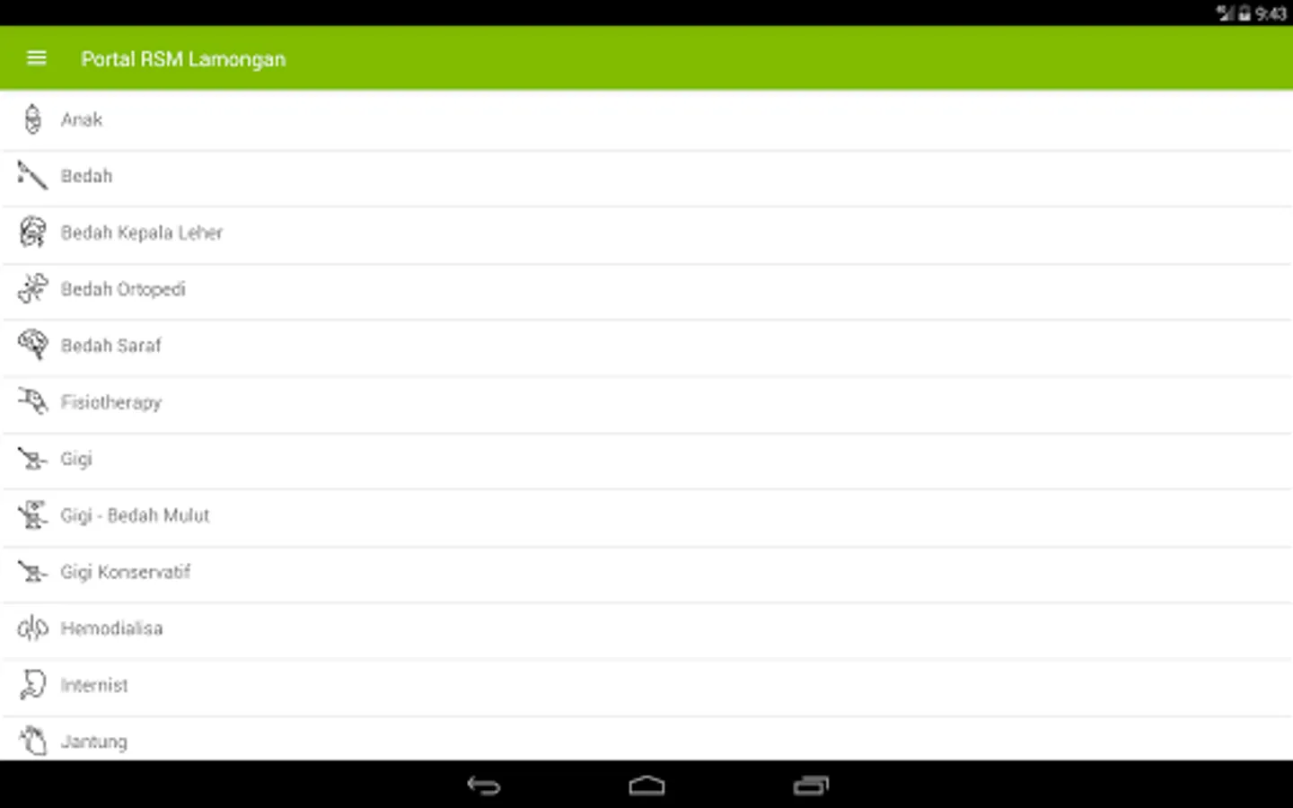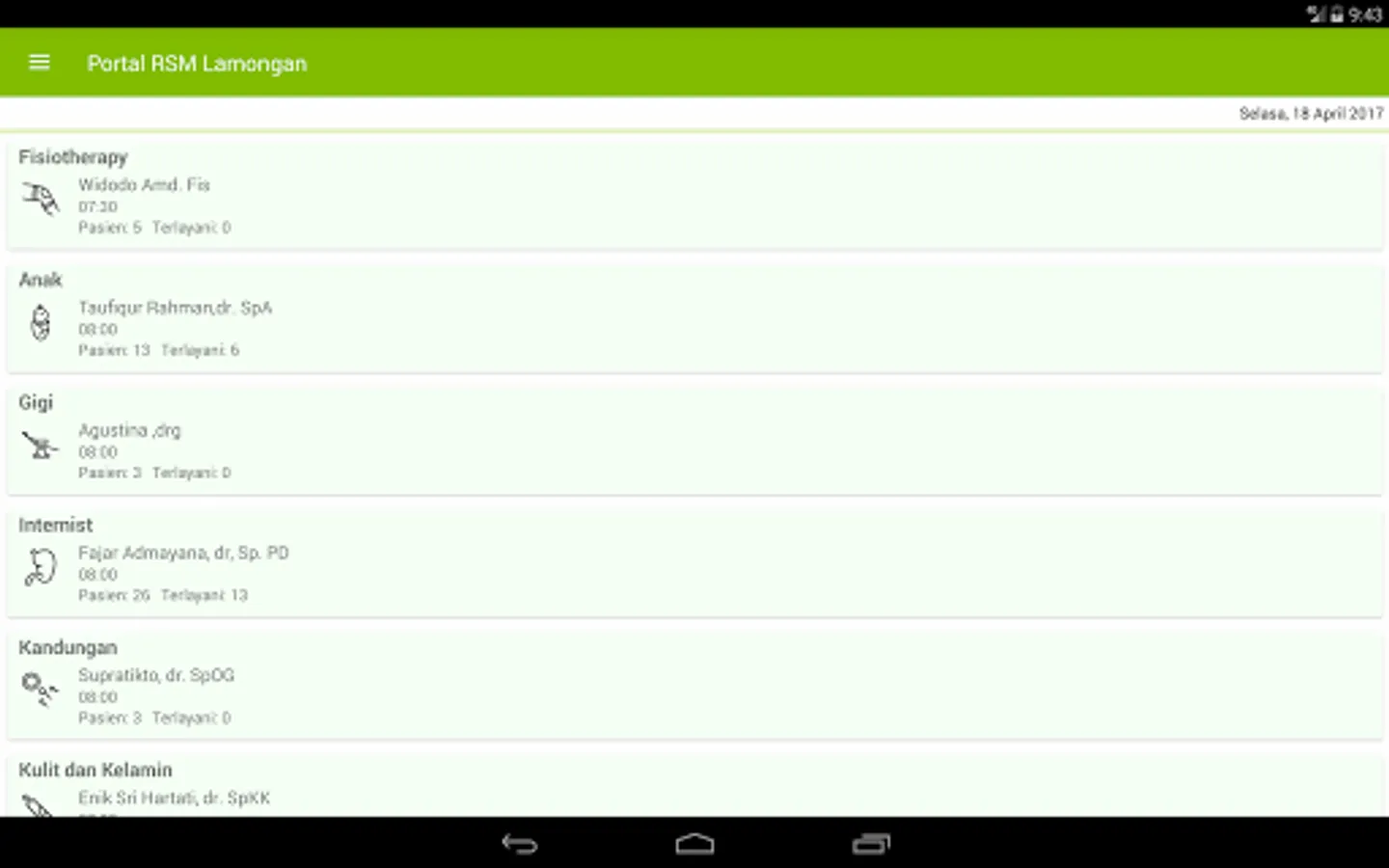 This android application is connected directly to the doctor's schedule, online registration, info and the latest news about Muhammadiyah Hospital Lamongan, in the future this application will always be updated with more complete features, including room availability, and others.