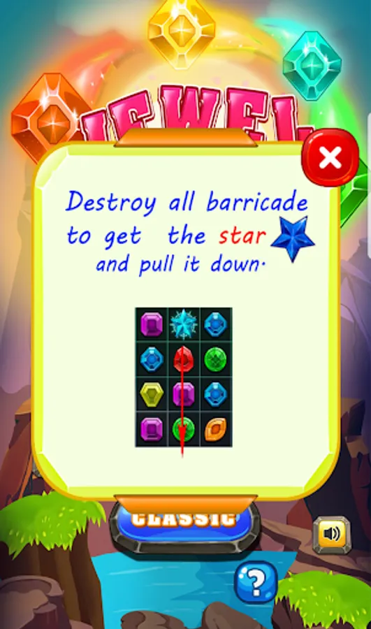 ★ Match 5 jewels in a line to create special color jewels star. Color jewels star can destroy all jewels with the same kind of selected jewels