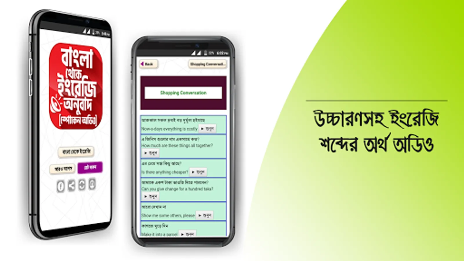 বাংলা থেকে ইংরেজি অনুবাদ করা জানলে বিশ্বের সকল মানব্জাতিকে আপনার মনের ভাব অনায়াসে বুঝাতে পারবেন। বাংলা থেকে ইংরেজি লেখা সহজভাবে সম্পন্ন করা যায় যদি আপনি বাংলা থেকে ইংরেজি বাক্য অনুবাদ সঠিকভাবে করতে পারেন। আমাদের এই অ্যাপটি আপনাকে বাংলা থেকে ইংরেজি dictionary এর মত সহায়তা করে থাকবে। এখনে পাবেন সঠিক ইংরেজি উচ্চারণ – স্পোকেন অডিও এর সাহাজ্যে ইংরেজি উচ্চারণ শিখুন সহজেই। এর আগে আমরা বাংলা থেকে ইংরেজি কিবোর্ড ব্যবহার করে ইংরেজি অনুবাদ করেছি কিন্তু এখন বাংলা থেকে ইংরেজি অনুবাদ বা বাংলা ইংরেজি অনুবাদ করব এই অ্যাপএর মাধ্যমে যা বাংলা টু ইংরেজি অনুবাদ একদম সহজ করে দেবে।